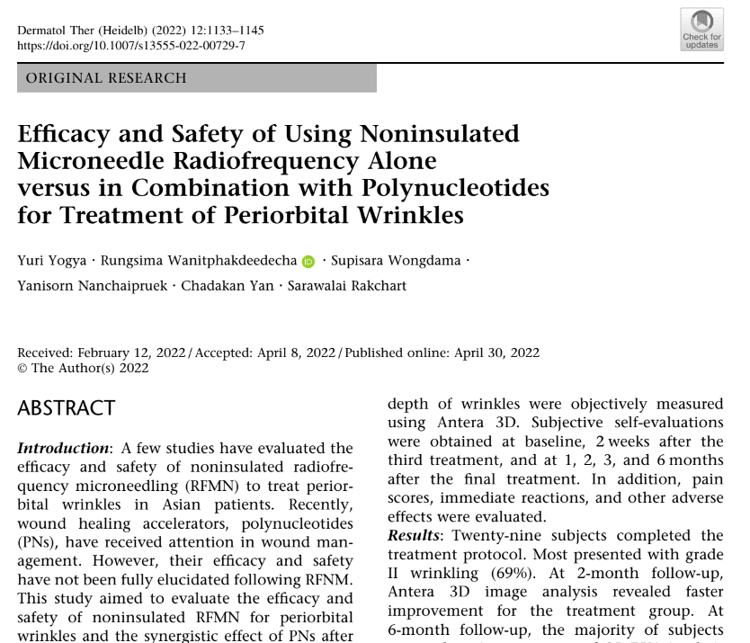 Estudo Clínico_Efficacy and Safety of Using Noninsulated Microneedle Radiofrequency Alone versus in Combination with Polynucleotides for Treatment of Periorbital Wrinkles